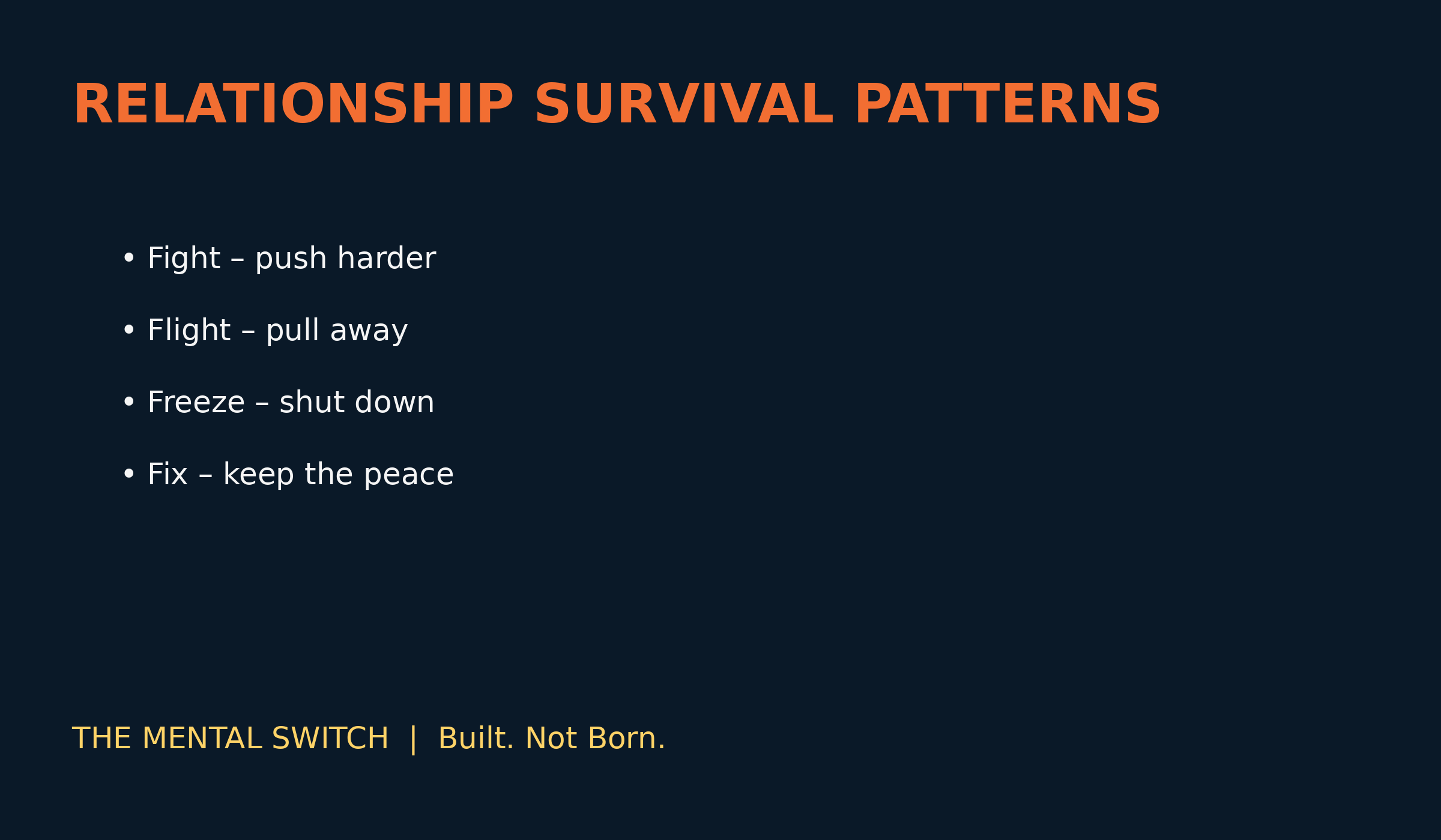 Most couples don’t realise they’re using old survival strategies — learned in homes touched by threat, neglect, fear, or abuse — because, as children, our brains chose how to keep us safe long before we had the maturity to choose differently. Those strategies became automatic.